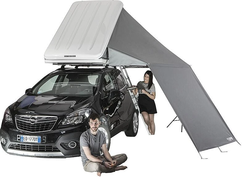 Das Sonnensegel bietet zusätzlichen Schutz vor Sonne und Regen. Die einstellbaren und auf das Wesentliche reduzierten Aluminiumstangen lassen sich schnell und einfach montieren.