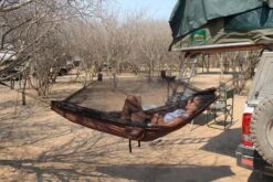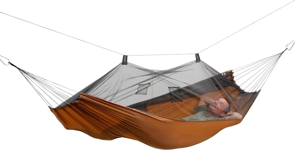 Bei der Moskito-Traveller-Pro sind sowohl der Stoff als auch das Moskitonetz imprägniert. Diese Imprägnierung wirkt dauerhaft gegen fliegende Insekten wie Moskitos und Stechmücken sowie gegen kriechende Insekten wie Zecken, Ameisen, Schaben und Milben, die sich nun nicht mal mehr auf den Stoff oder auf das Netz setzen. Die Imprägnierung ist für Menschen vollkommen unbedenklich, hautfreundlich, geruchsneutral, hitzebeständig und waschfest (bis 50 Waschgänge). Die Hängematte ist ultraleicht und ist beidseitig benutzbar, mit oder ohne Netz (einfach wenden). Dabei ist sie äußerst robust. Der Einstieg erfolgt seitlich durch einen Reißverschluss, mit dem beiliegenden Seil wird das Netz vom Körper abgespannt.