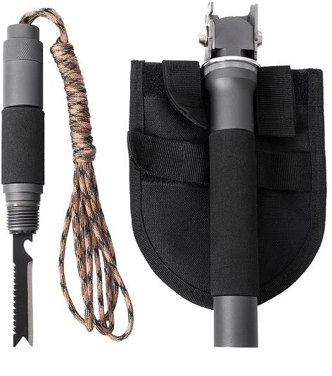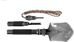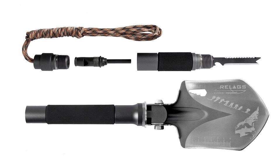 Hochwertige und leichte Klappschaufel fĂŒr den harten Einsatz. Mit praktischer Canvas-Tasche fĂŒr den Transport. Blatt aus gehĂ€rtetem Borstahl, Stiel und Griff aus gehĂ€rtetem Aluminium. Die 10 in 1 Survival Schaufel verfĂŒgt ĂŒber 10, insgesamt 14 Funktionen: Paracord (ca. 3m LĂ€nge), ZĂŒndstahl, Notfallpfeife, Messer, SĂ€ge, Hackbeil, Axt, Hacke, Schaufel, Hammer, Drahtschneider, Messwerkzeug, Auto-Nothammer sowie einen SchraubenschlĂŒssel (4, 5, 6, 8, 10 mm). Einfachste Montage dank Gewinde mit geringem SpaltmaĂ.