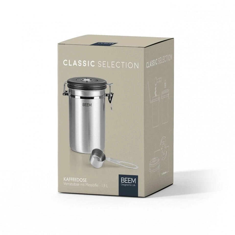 Kaffeeexperten und Genießer wissen es längst: Kaffee als frisches Röstprodukt ist sehr empfindlich. Äußere Einflüsse wie Licht, Wärme, Sauerstoff und Feuchtigkeit haben einen negativen Einfluss auf das Kaffeearoma. Daher sollte insbesondere gemahlener Kaffee immer an einem kühlen, dunklen und trockenen Ort gelagert werden. Ideal für die Lagerung ist ein lichtundurchlässiges und luftdicht verschließbares Gefäß, dass die Kaffeebohnen oder das Pulver länger frisch hält – wie die BEEM Kaffeedose die zudem ein wirklich attraktiver Blickfang in jedem Küchen-Ambiente ist. Dank des luftdicht schließenden Bügelverschlusses wird das Kaffeearoma zuverlässig und langfristig geschützt. Das CO2-Frischeschutzventil stößt schädliches CO2 aus der Dose und verhindert gleichermaßen das Eindringen von Sauerstoff, um den Kaffee lange aromafrisch zu halten. Für max 700 g Kaffeebohnen oder gemahlenen Kaffee. Dank des einstellbaren Datums lässt sich jederzeit und auf einen Blick erkennen, wann du den Kaffee eingefüllt hast. Ein Must-Have für alle Kaffee-Genießer! Inklusive Messlöffel.