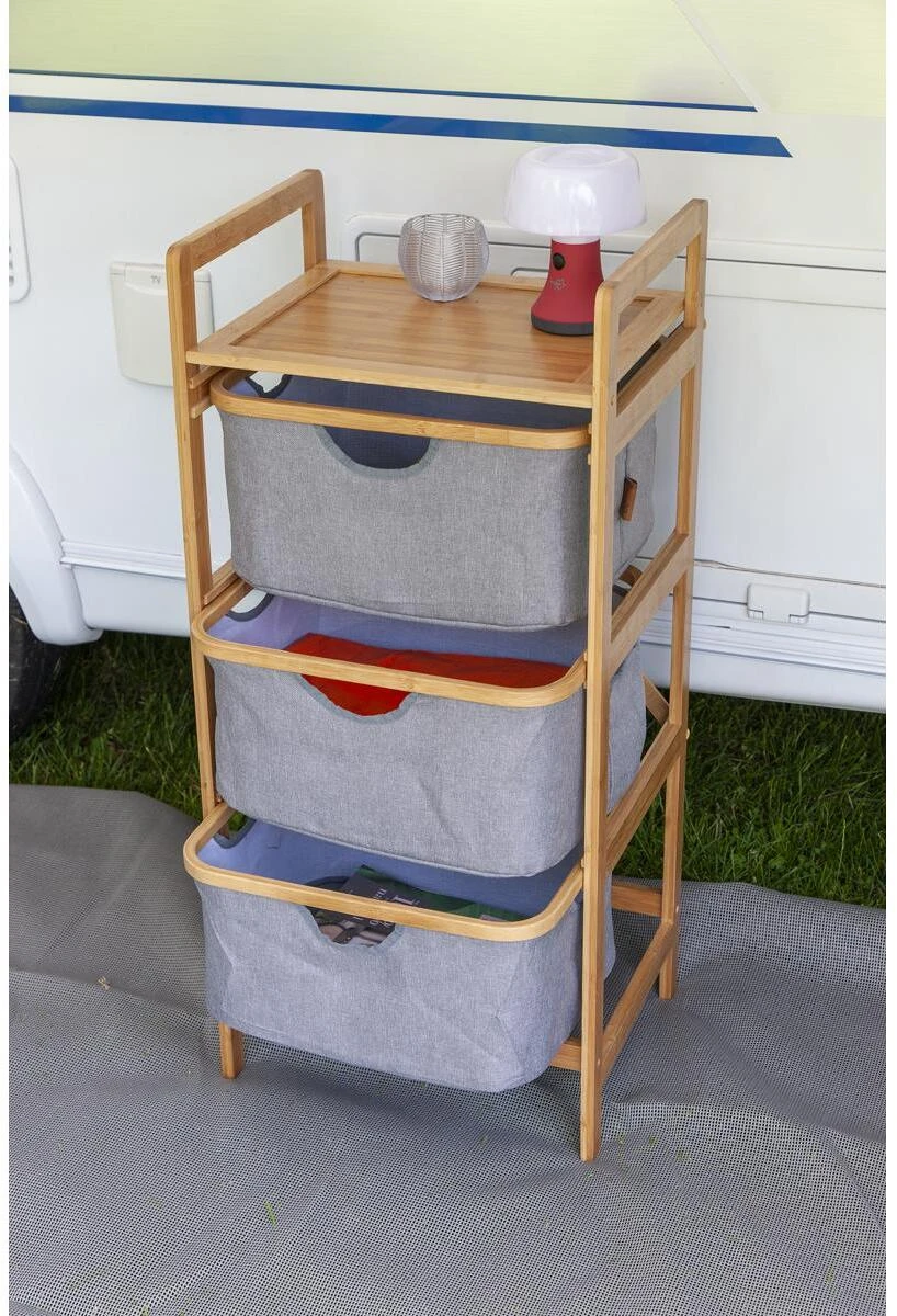 In diesem Set enhalten der stilvoll verarbeitete Selsdon Campingschrank im ‚Urban Look‘ und der Rainham Wäschekorb mit stilvoller Leinenoptik. Der modern gestaltete Campingschrank mit 3 ausziehbaren Körben hat einen Bambusrahmen und ist ideal für im Zelt, zu Hause im Bad oder auf dem Balkon. Der Rainham Wäsche- oder Aufbewahrungskorb ist aus Oxford-Polyester-Gewebe mit stilvoller Leinenoptik hergestellt. Mit Bambusrahmen inklusive eines Deckels. Ideal für zu Hause im Bad oder im Zelt.