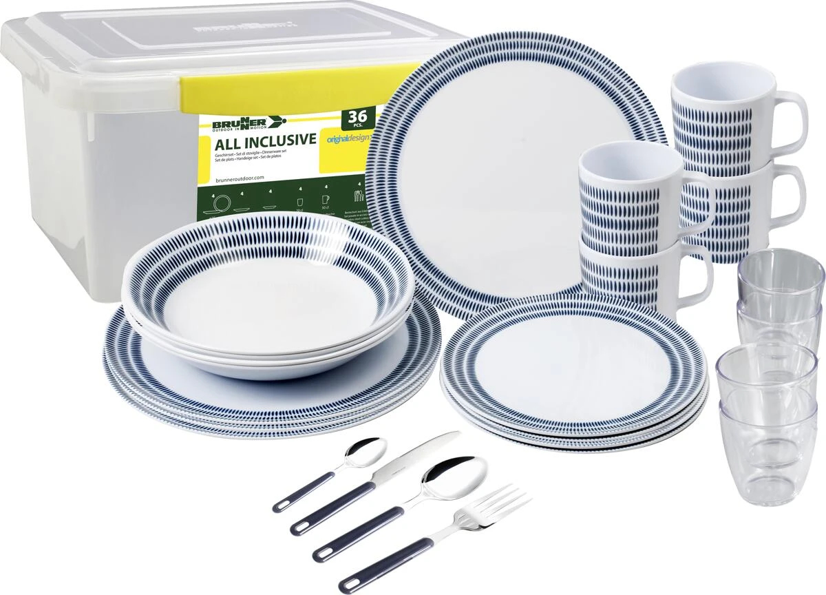Das 36-teilige Geschirr-Komplettset aus hochwertigem Melamin bereichert jede mobile Küche.