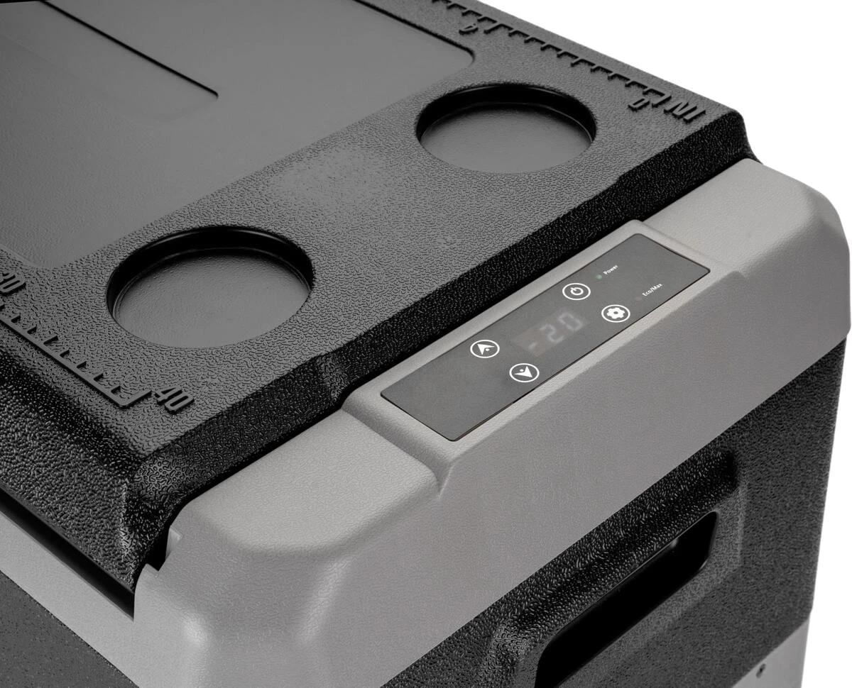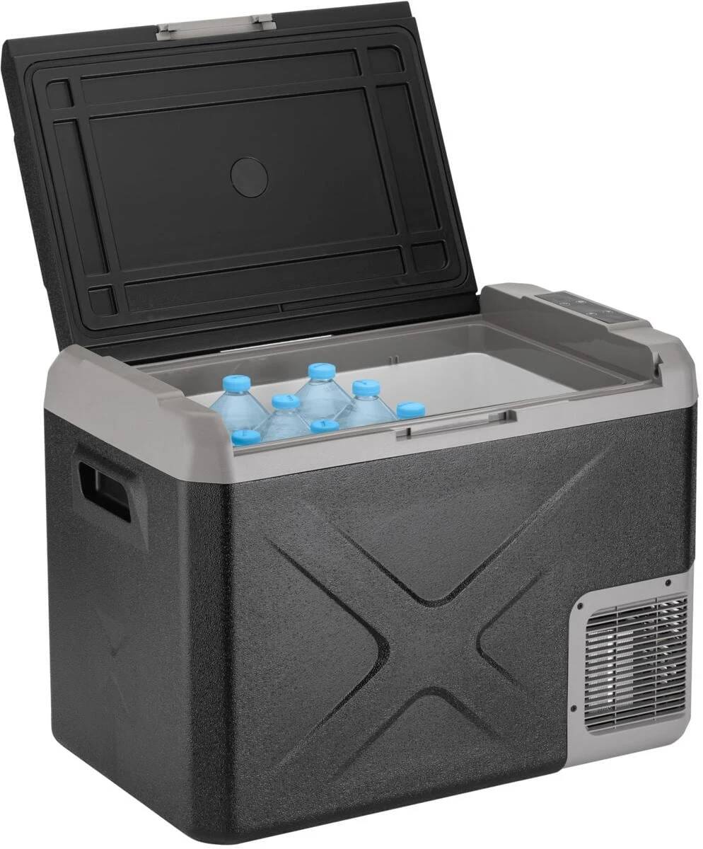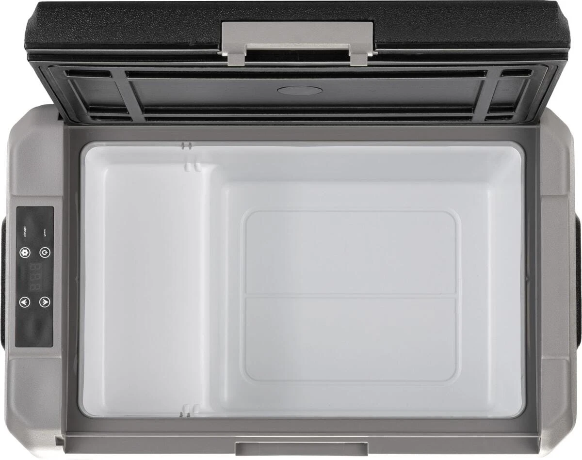 Neue tragbare bivalente Kühl-/Gefrierbox mit einem einzelnem Kühlfach. Modernes und kompaktes Design. Ausgestattet mit einem robusten, stoßfesten Kunststoffgehäuse mit hoher Isolierkapazität und einer digitalen Anzeige zur Temperaturkontrolle. Ideal für Wohnmobile, Autos und Boote.