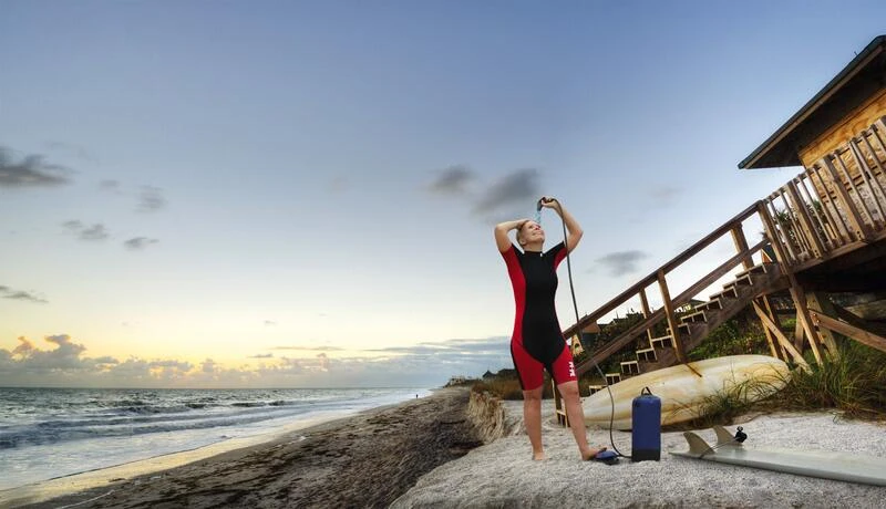 Die Dusche immer dabei, in der robusten Packtasche. 12L Wassertank aus robustem PVC. Mit Fußpumpe, Duschkopf und Schlauch (195cm)