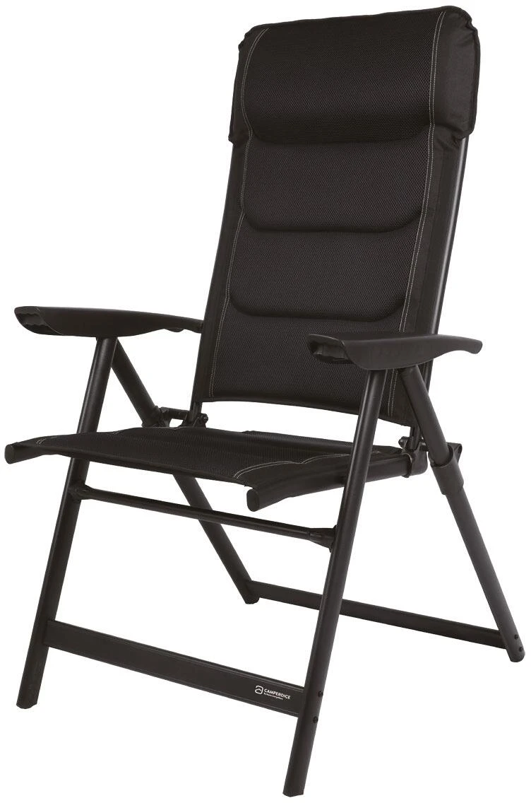 Die Stühle bestechen durch ihre Funktionalität und das edle Design. Der Rahmen besteht aus Aluminium und sorgt für Stabilität. Der Bezug ist aus 100 % Polyester, 2D Mesh. Die Lehne kann in sieben verschiedene Positionen gebracht werden. Ein geringes Packmaß erleichtert den