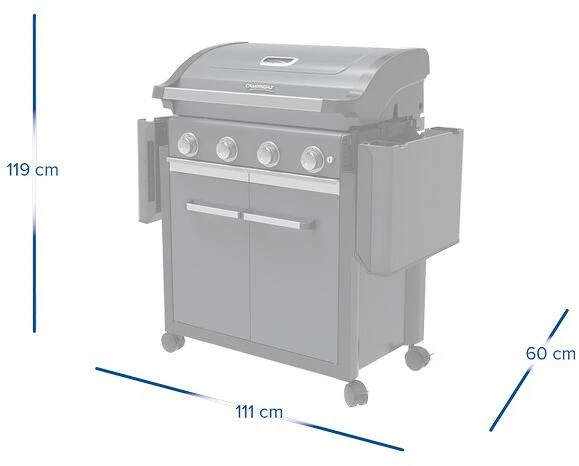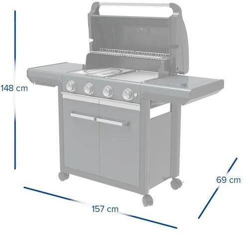 Mit dem 4 Series Premium Gasgrill wird das Zubereiten der Gerichte für die Familie zum Kinderspiel. Der Grill ist mit der Blue Flame Power Brennertechnologie in einem neuen einzigartigen Design ausgestattet, für noch bessere Hitzeverteilung und ein perfektes Grillerlebnis. Vier kräftige Edelstahl Brenner und die große gusseiserne Grillfläche mit dem Culinary Modular Basiseinsatz bieten die optimale Kombination, um eine große Anzahl an Gerichten zu zaubern. Nach dem Grillen kann der Grill einfach gereinigt werden, dank des einzigartigen und verbesserten InstaClean® Aqua Systems. Der Wagenschrank mit Türen ist teilweise geschlossen und bietet Platz für bis zu 11 kg Gasflaschen.