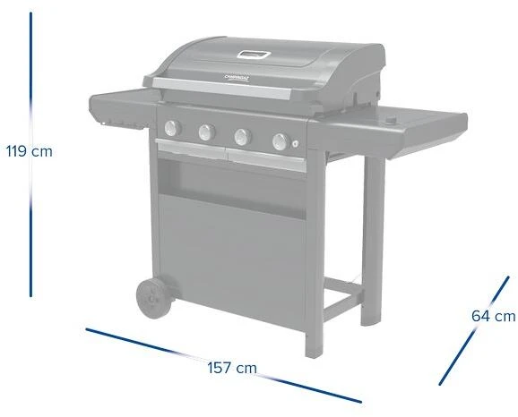 - Abdeckung vorne mit Ablagefach und Bereich zum Abstellen einer Gasflasche mit bis zu 6 Kg