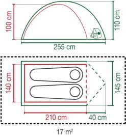 - Innenzelt: Atmungsaktives Polyester, PU überzogen, Moskitonetz