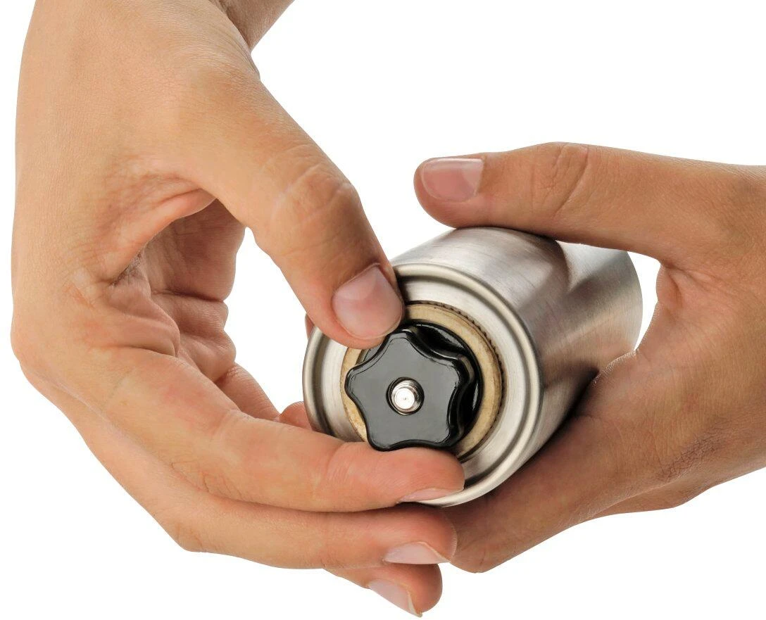 Kaffeebohnen mahlen in handlich, praktisch, einfach und schnell. Klingt gut? Finden wir auch! Mit der Kaffeemühle von Fackelmann im Handumdrehen die erquickenden Bohnen in feines oder grobes Pulver verwandeln. Denn das Mahlwerk aus Keramik hat verschiedene Mahlgradstufen, mit denen das Pulver individuell zerkleinert werden kann. Der Körper der Mühle ist aus hochwertigem Edelstahl und macht in seinem klassischen Silber-Look eine gute Figur. Mit ihrer handlichen Größe Ø 4,5 x 19 cm ist die Mühle auch ideal für unterwegs für Camping, Picknick oder andere Abenteuerausflüge.
