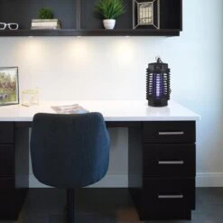Bei Insektenproblemen im Haus wird das Gerät einfach auf eine ebene Fläche gestellt und eingesteckt. Alternativ kann es auch am Ring an der Oberseite des Gehäuses aufgehängt werden. Im Boden des Gerätes ist eine Auffangschale integriert, die zum Reinigen entnommen werden kann. Eine Bürste zum Reinigen des Hochspannungsgitters liegt ist im Lieferumfang enthalten.