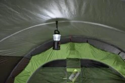 2 Moskitonetz-Eingänge halten lästige Plagegeister fern und kann bequem von innen je nach Klima variabel bedient werden. Mit einer Reißschluss- Trennwand lässt sich das Innenzelt in eine große Kabine oder 2 Schlafbereiche aufteilten. 5 Praktische Organizer und 5 Innenzelttaschen für Utensilien. 2 Lampenhalter für Campingleuchten runden den Komfort ab.