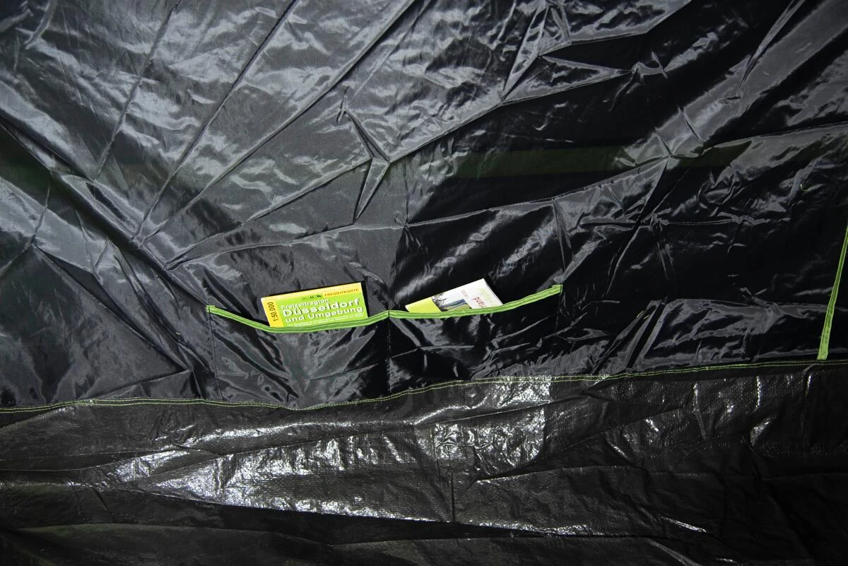 Die Nähte sind mittels Nahtbandes wasserdicht versiegelt und gewähren eine bessere Naht- Reißfestigkeit. Kabeleingang mittels Reißverschlusses und Kabelführung für Beleuchtung.