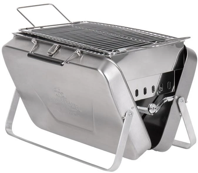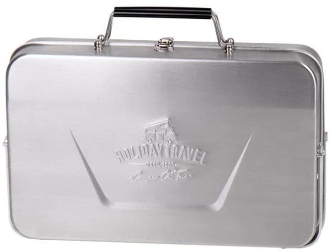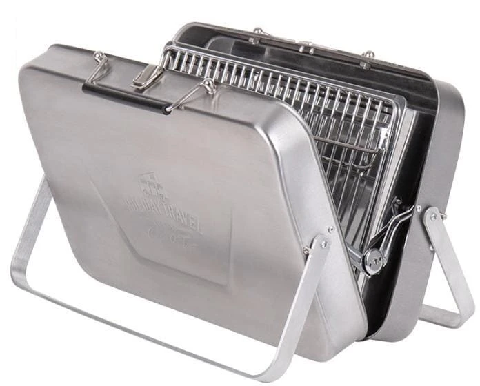 Koffergrill aus der Trendserie HOLIDAY TRAVEL. Dieser Koffergrill wird mit Holzkohle befeuert und ist in seinem praktischen Kofferformat einfach zu transportieren. Er ist in wenigen Sekunden aufgebaut und einsatzbereit. Zum Befüllen mit Holzkohle lässt sich der Rost zur Seite klappen.