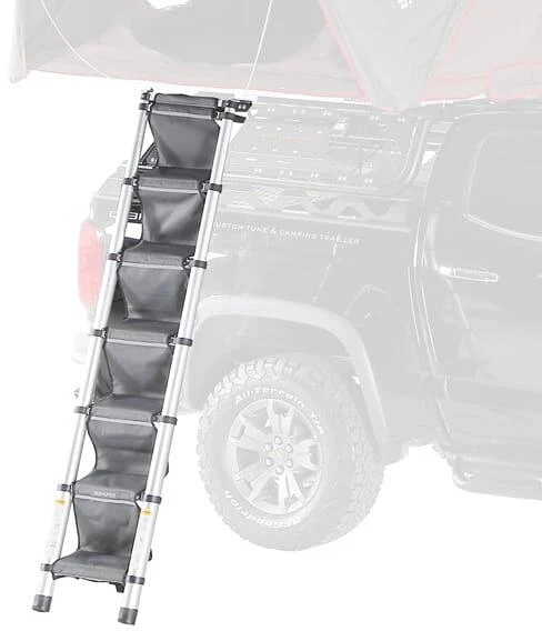 Aber auch auf trockenem Fuß macht es die Produkterweiterung deutlich angenehmer auf die Sprossen der Leiter zu treten. Statt auf schmalen Sprossen in das Dachzelt klettern zu müssen, sorgen die HC Steps dafür, dass die Leiter fast wie eine normale Treppe begangen werden kann: Mithilfe der HC Steps werden die einzelnen Sprossen zu echten Stufen.