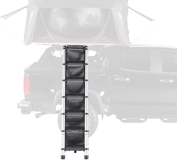 Hinweis: Die HC Steps können an der Leiter des Skycamps verbleiben wenn das Dachzelt geschlossen wird. Eine Ausnahme bildet das X-Cover. Hier werden die Steps vor dem Abbau abgenommen.