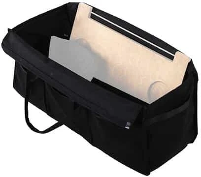 In der Tasche können die alle Bestandteile der Disco Serie (ausgenommen der Pfanne) gemeinsam verstaut werden. Nichts geht verloren, nichts wird zuhause vergessen. In die große Tasche passen das Dreibein, der Kocher und das Tischchen. Einzig die großformatige Disco-Pfanne muss separat in einer eigenen Tasche verstaut werden. In der Tasche finden zudem viele Kochutensilien und wichtiges Zubehör in den sieben Außentaschen Platz, und können gemeinsam mit der Disco Serie aufbewahrt und transportiert werden. So erleichtert es die große Tasche dir, Ordnung zu halten.