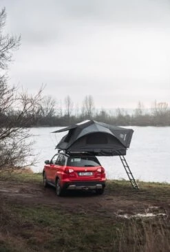 - dicker, haltbarer und atmungsaktiver Zeltstoff – windbestĂ€ndig und leiser als andere Dachzelte