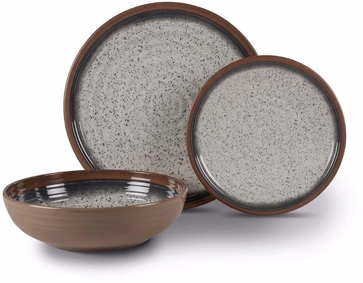 Das Farmhouse-Set, aus der Artisan Kollektion für Melamin-Geschirr, kombiniert traditionelleErdtönemit einem gesprenkeltenDesign. Dieses 12-teilige Set, zu 100% aus Melamin, ist extrem robust, leicht und spülmaschinengeeignet.