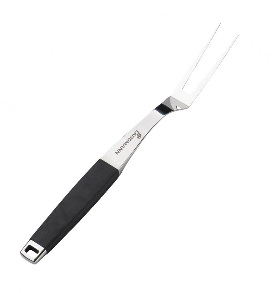 Grillgabel aus Edelstahl. Komfortabel durch eine ergonomisch optimierte Formgebung. Mit gummiertem Griff für eine sichere Handhabung.