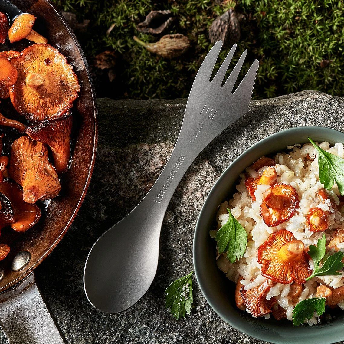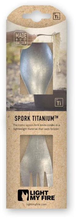 Die legendĂ€re Löffel-Gabel-Messer-Kombination aus einem leichten Material, das fĂŒr immer hĂ€lt. Das Spork Titan ist das hĂ€rteste von allen. Die extreme Festigkeit, Haltbarkeit und Leichtigkeit sorgen dafĂŒr, dass ein Spork fĂŒr die schwierigsten Herausforderungen gebaut wird. FĂŒr diejenigen von uns, die wochenlang keine Berge besteigen oder wandern, hat der Spork Titan noch viel zu bieten. Es wird niemals brechen, egal wie oft die Kinder versehentlich darauf treten, es ist nicht korrosiv, nicht magnetisch und da Titan extrem kompatibel mit dem menschlichen Körper ist, ist das Metall ungiftig und die polierten Teile bieten kein Metall Geschmack. Der Light My Fire Titanium Spork ist der perfekte Begleiter fĂŒr Rucksacktouren, Reisen und den tĂ€glichen Gebrauch.