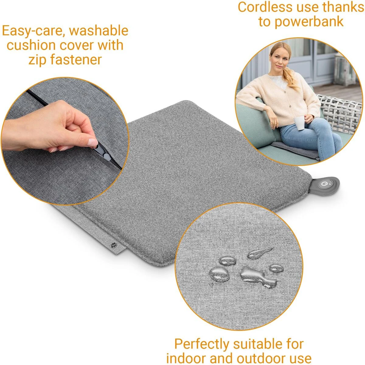 Perfekt geeignet fĂŒr den Einsatz im Innen- und AuĂenbereich. Nehmen Sie Ihr Heizkissen ĂŒberallhin mit und genieĂen Sie WĂ€rme to go. Ob beim Camping oder zu Hause, das Heizkissen macht jeden Sitz gemĂŒtlicher. Dank modularem Druckknopfsystem können Sie Ihre WĂ€rme- und Heizkissen miteinander kombinieren. Das mobile Kissen lĂ€sst sich bequem ĂŒberallhin mitnehmen, denn der Controller ist gleichzeitig auch der Tragegriff. Aus robustem Material hergestellt, ist es schmutz- und feuchtigkeitsbestĂ€ndig und lĂ€sst sich einfach und schnell sĂ€ubern.