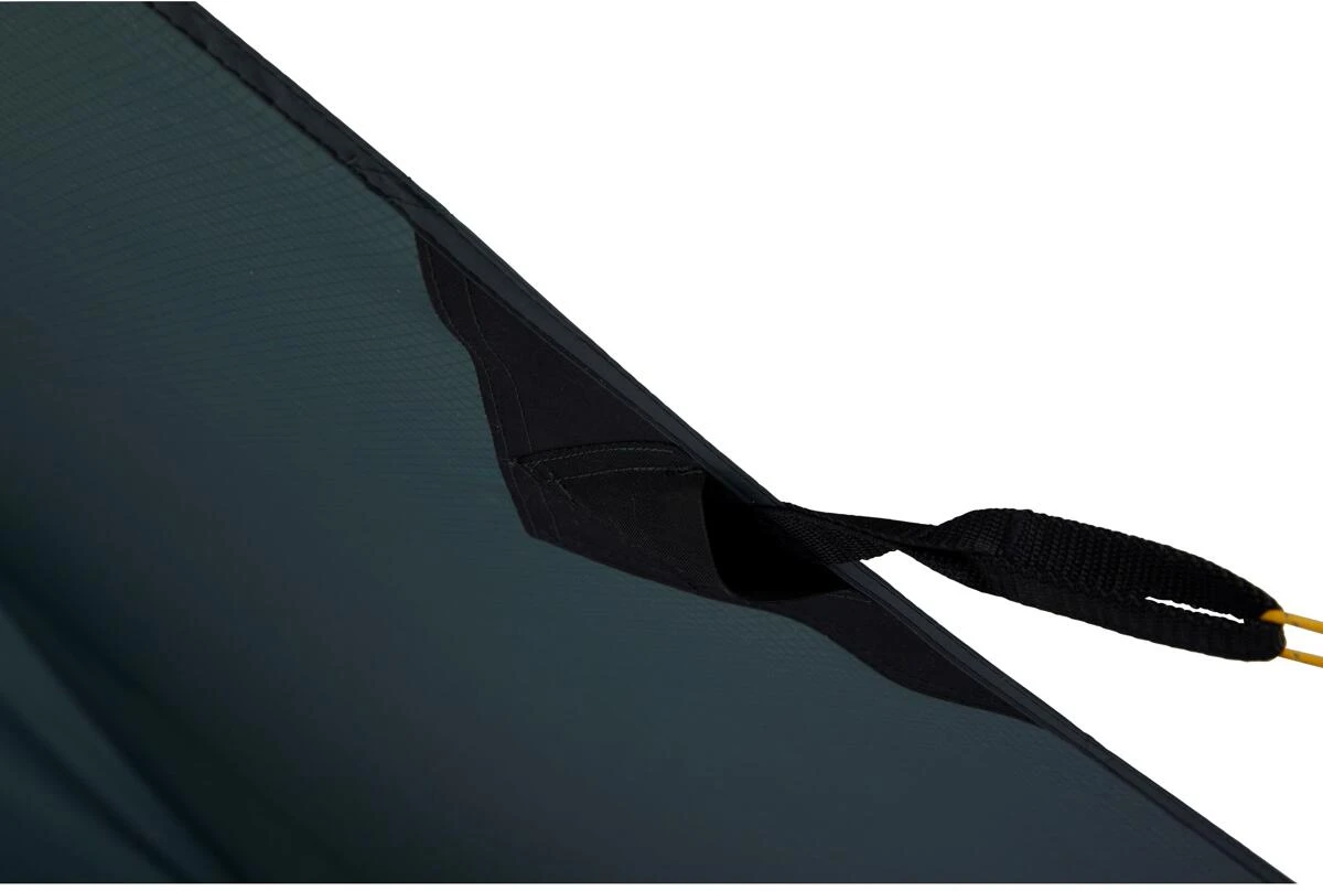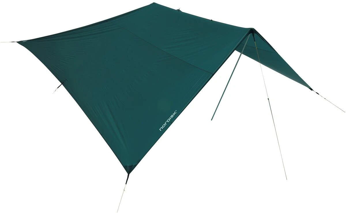Die Tarps der Voss SI-Serie sind leicht, sehr strapazierfähig und flexibel einsetzbar. Sie sind in drei unterschiedlichen Größen 9, 14 und 20 m² erhältlich. Mehre Tarps können bei Bedarf miteinander verbunden werden. Der rechteckige Schnitt ermöglicht eine Vielzahl von Abspannmöglichkeiten bei jedem Wetter und in fast jeder Umgebung. Das Tarp hat diverse verstärkte Abspannpunkte an den Seiten und an den Schlaufen im Gewebe. Sie können mithilfe des Nordisk Helmet Slides, Wanderstöcken, Abspannleinen oder Ähnlichem aufgebaut werden. Voss SI Tarps können freistehend genutzt werden. So schafft man zusätzlichen, geschützten Lagerplatz. Abhängig von Form und Größe des Tarps kann es aber auch als Zelterweiterung eingesetzt werden.