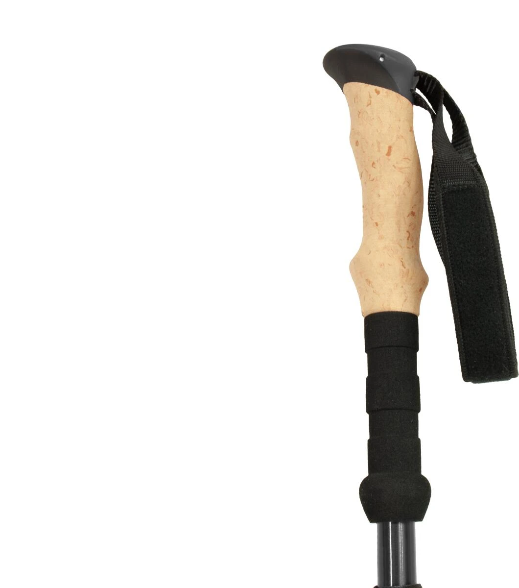 Faltbarer Wander- und Trekkingstock mit rutschfestem und ergonomischem Korkgriff. Besticht durch sein äußerst kleines Packmaß von nur 37 cm. Schnelle und kraftlose Bedienung des Faltmechanismus durch Betätigung des Push Buttons. Einfache Längenverstellung durch Flip-Lock Verschluss. Stöcke sind individuell einstellbar von 120-135 cm. Dank der Griffverlängerung müssen die Stöcke bei kurzen Anstiegen nicht jedes Mal verstellt werden. Ausgestattet mit Wolfram-Karbid-Spitze, zwei austauschbaren Trekkingteller für unterschiedliches Gelände und verstellbaren Handschlaufen. Hergestellt aus stabilem und sehr leichtem Flugzeugaluminium und mit einem im PVC-Schlauch geschützten Stahldraht. Ein treuer Begleiter für jedes Gelände.