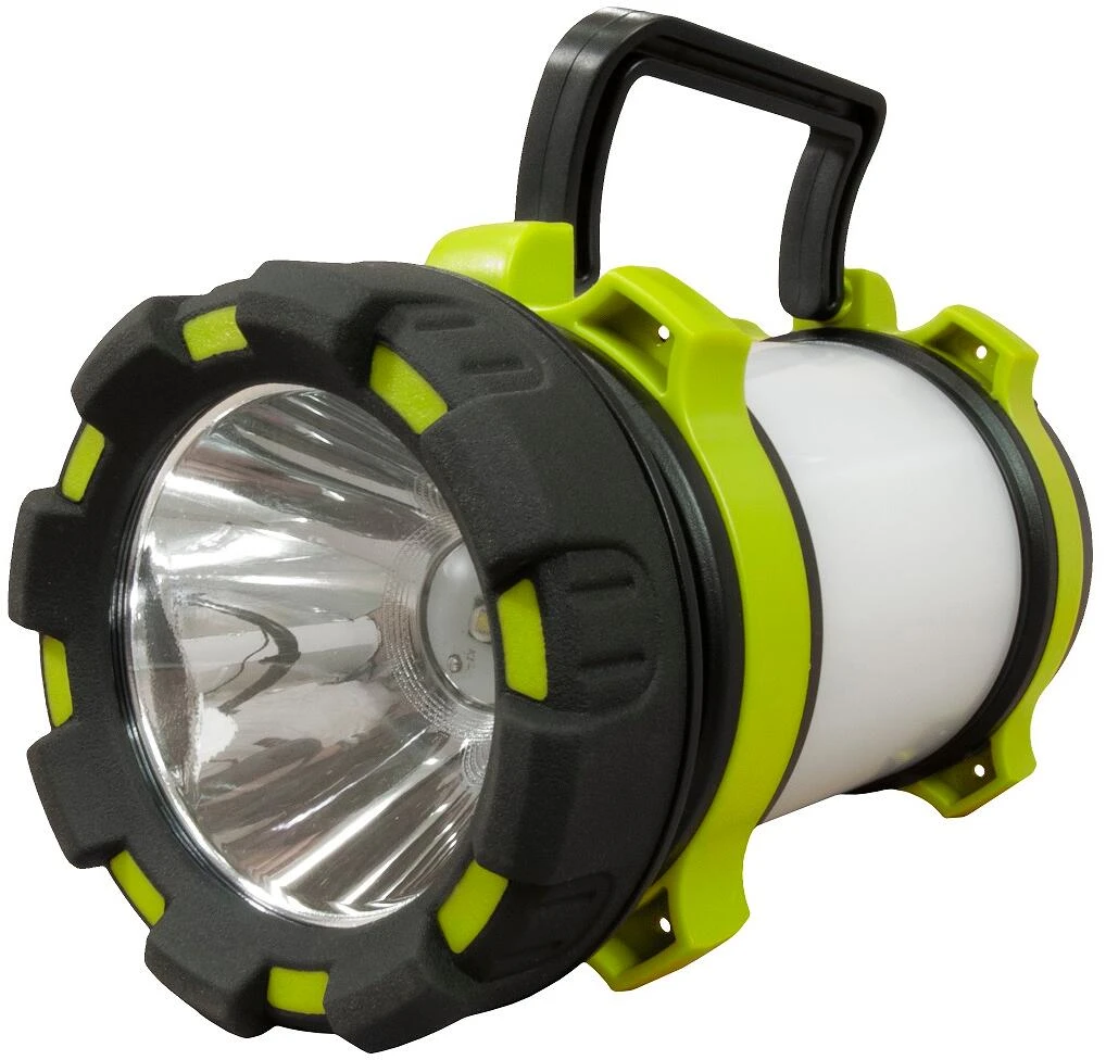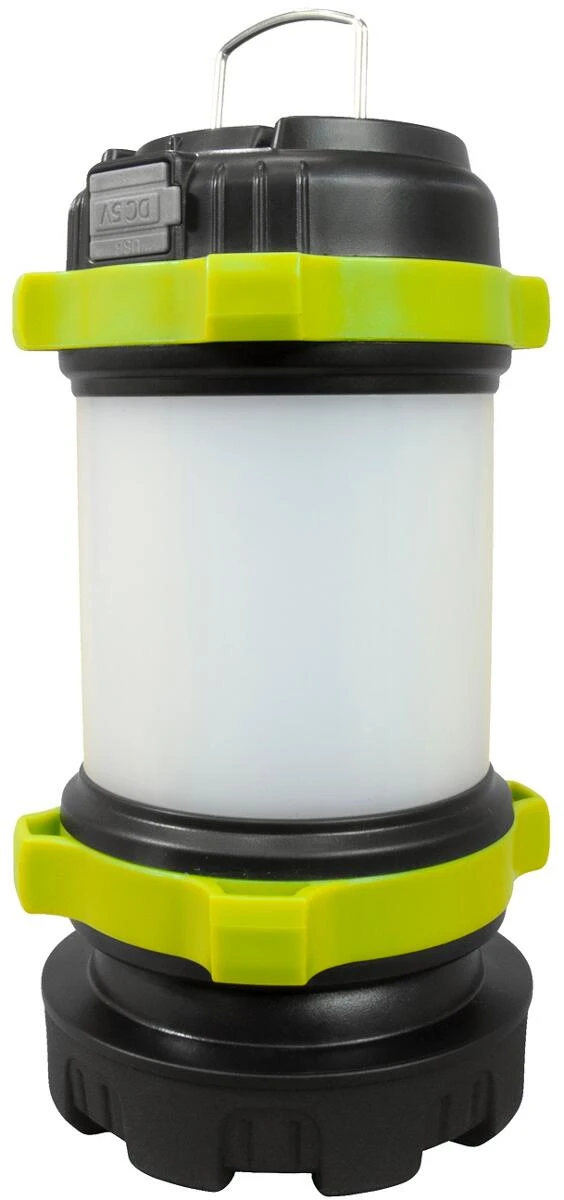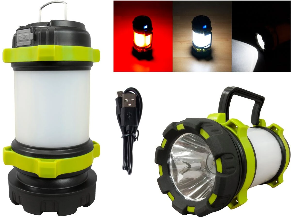 Sehr helle und vielseitig verwendbare Lampe mit 1000 Lumen und Powerbankfunktion. Ein echter Allrounder fĂŒr unterwegs: Campinglaterne, Taschenlampe und Powerbank in einem. Ausgestattet mit einem Kunststoffglas, welches ein indirektes Licht gleichmĂ€Ăig 360° ausstrahlt. Als Taschenlampe wie auch als Campinglaterne verfĂŒgt Sie zwei Helligkeitsstufen. Als Campinglaterne verfĂŒgt sie zudem ĂŒber Rotlicht und rotes Blinklicht. Der angebrachte AufhĂ€ngehaken lĂ€sst sich ebenso einklappen wie der seitlich angebrachte Griff fĂŒr den Einsatz als Taschenlampe. Die 2 eingebauten Li-Ion-Akkus mit insgesamt 4000 mAh KapazitĂ€t können bequem ĂŒber den USB-Eingang aufgeladen werden und der Mikro-USB-Ausgang dient der Funktion als Powerbank.