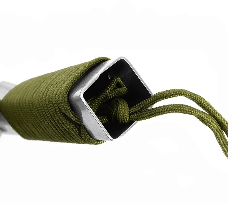 - 7 Funktionen: Schaufel, Nagelzieher, Messer, Säge, Schraubenschlüssel, Lineal und 3 m Paracord