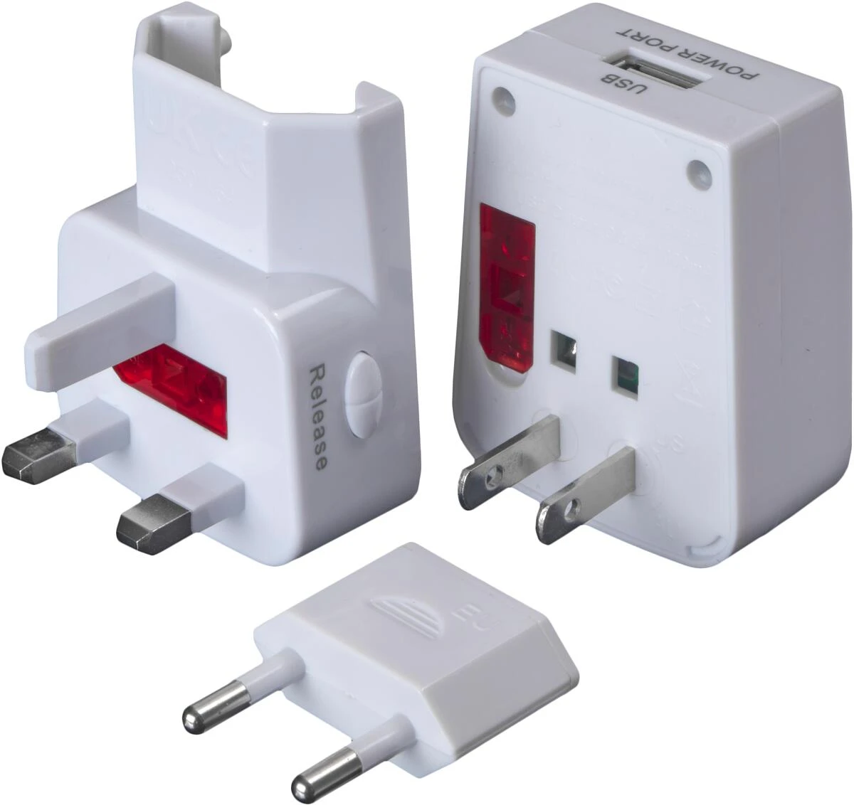 Dank des integrierten USB-Anschlusses können Sie mit diesem Universaladapter auf Reisen nicht nur Ihr komplettes elektronisches Zubehör verwenden, sondern auch Ihre wichtigsten GerĂ€te direkt laden. Mit Funktionsanzeige, ‚Release‘-Knopf zur Separierung der AnschlĂŒsse, einem Ăberlastungsschutz und Kindersicherung sowie Transportbeutel.