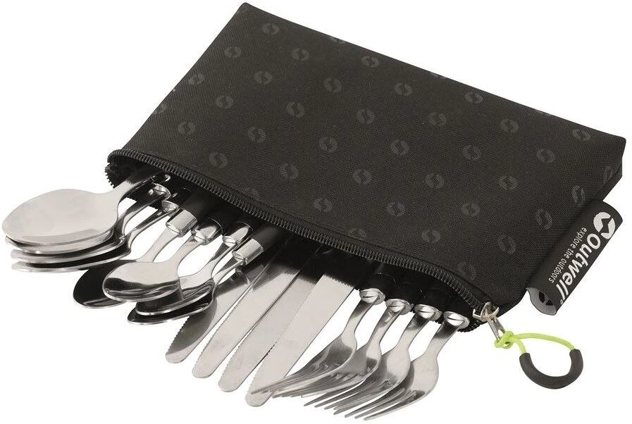 Besteckset 16-teilig aus Edelstahl mit Kunststoffgriff inkl. Aufbewahrungstasche.