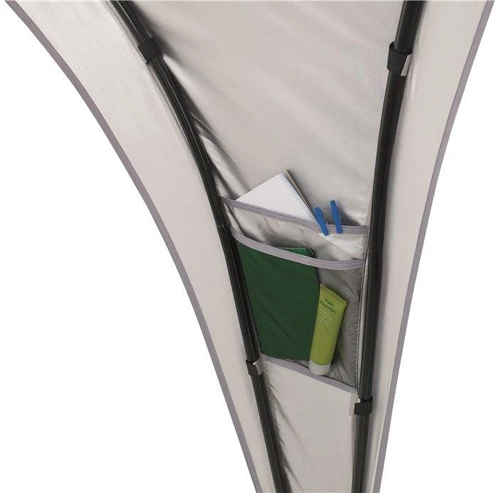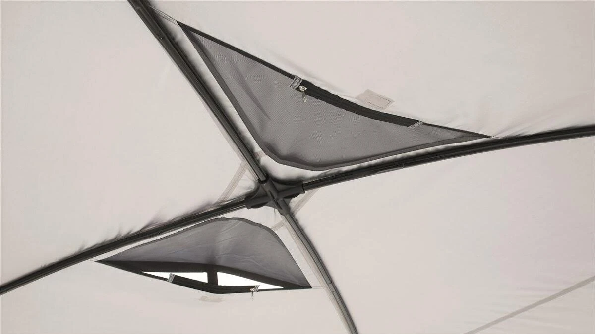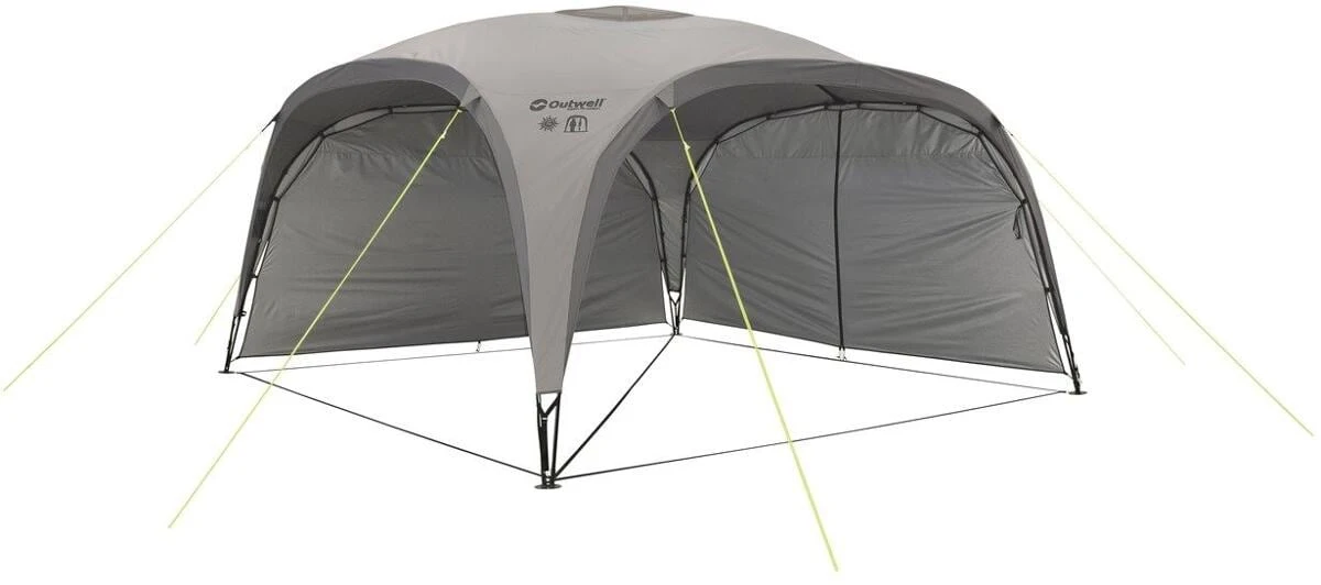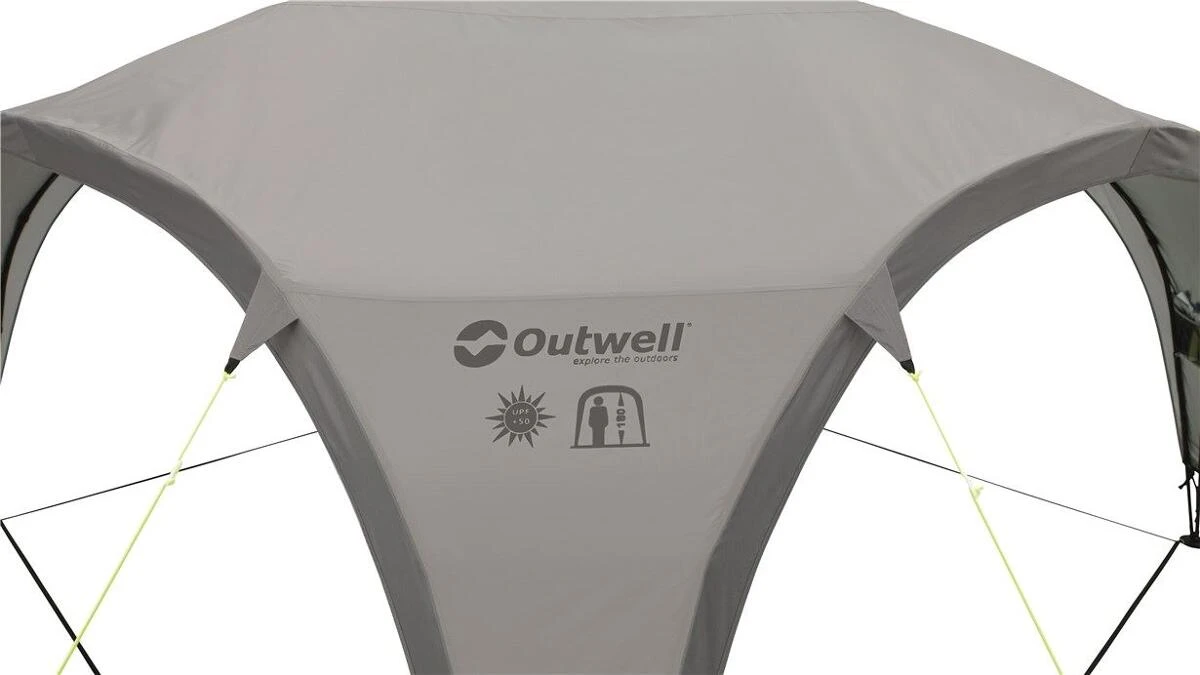 Die Outwell Event Lounge bietet einen vielseitig nutzbaren, frei stehenden Unterschlupf. Die Ă€uĂerst robuste und stabile Konstruktion zeichnet sich durch groĂe ZugĂ€nge und eine bequeme Stehhöhe aus. Dank der BelĂŒftungsöffnung an der Spitze, dem AufhĂ€ngepunkt fĂŒr eine Laterne in der Mitte sowie zwei Netztaschen bietet die Lounge ein HöchstmaĂ an praktischer FlexibilitĂ€t. Das Polyester ist mit einer Silber- und PU-Beschichtung versehen, sodass es einer WassersĂ€ule von 1500 mm standhĂ€lt. Um einen gröĂeren geschĂŒtzten Aufenthaltsbereich zu schaffen, können miteinander kompatible SchutzdĂ€cher ĂŒber eine Regenrinne verbunden werden.