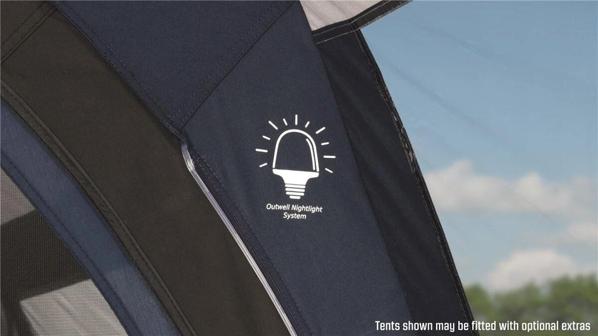 - Vorbereitet fĂŒr das einzigartige integrierte Outwell Nightlight System (patentiert) mit Umgebungslicht fĂŒr leichten Zugang und Orientierung.