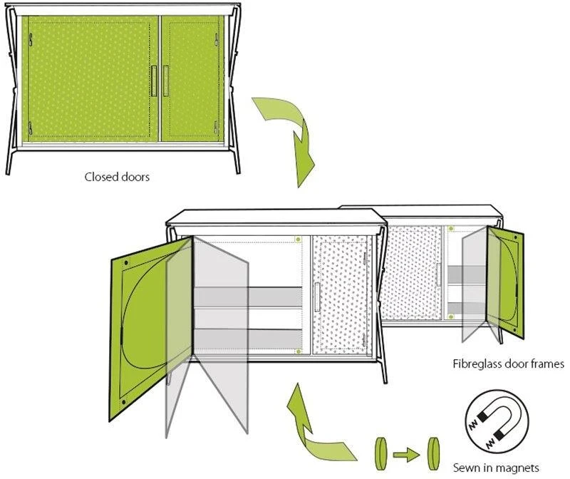- Tür aus Netzstoff mit Reißverschluss, um ein Eindringen von Insekten in den Schrank zu verhindern