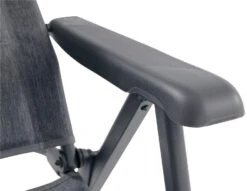 Extrabreite gepolsterte Sitzfläche und Rückenlehne mit sieben Verstellmöglichkeiten für optimalen Komfort. Besitzt eine maximale Tragkraft von 200 kg dank des leichten, hochfesten, pulverbeschichteten Aluminiumrahmens mit ergonomischen Armlehnen und integriertem, abnehmbarem Nackenkissen