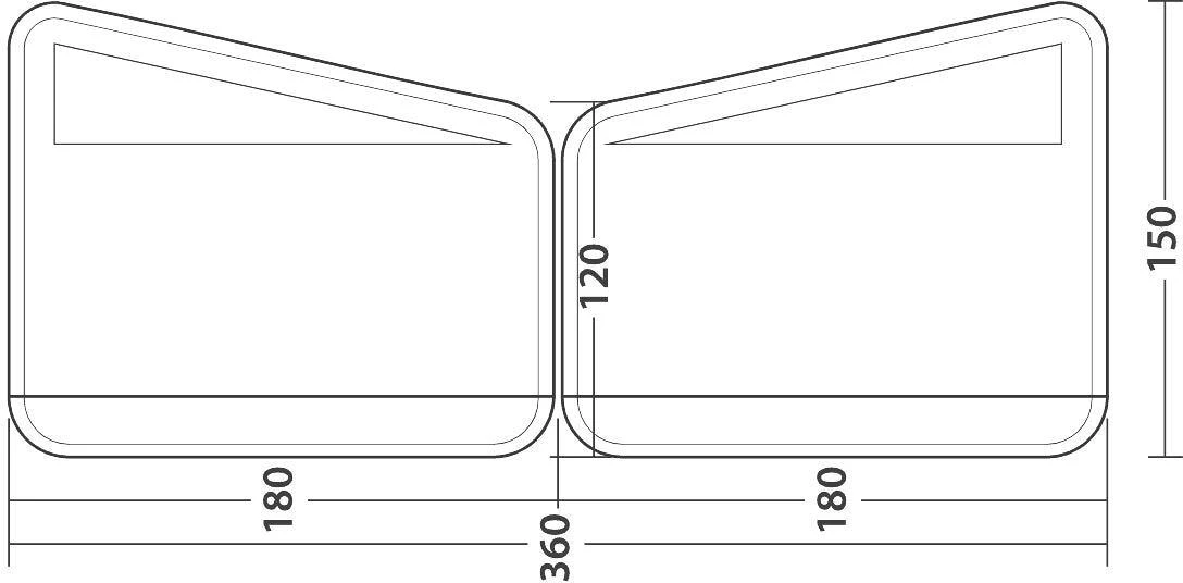 Modularer aufblasbarer Windschutz mit abgeschrägter Oberseite für maßgeschneiderten Schutz und Privatsphäre, um einen einzigartigen Raum im Freien zu schaffen. Erweitert das System je nach Bedarf um weitere 180er Kits oder die Windscreen Air Scalable 150 Optionen.