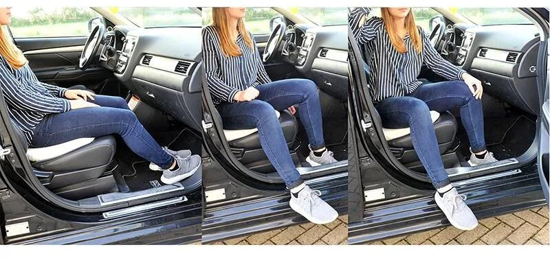 Der Sitz kann schnell und einfach durch den flexiblen Drehmechanismus verlassen werden. Ideal für den Einsatz im Auto, zum Hause oder im Büro.