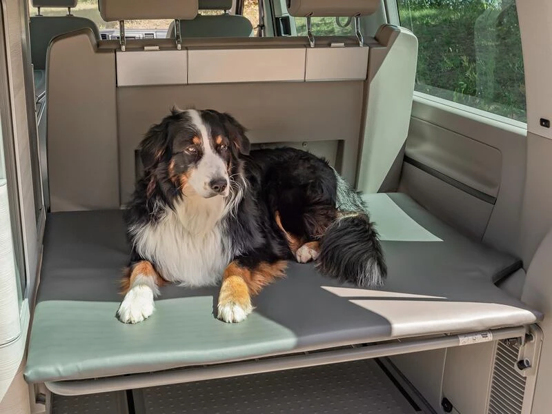 Die Hundematte ist die maßgeschneiderte Auflage für die Bettverlängerung im VW California Ocean/Coast. Der hochwertige Kunstleder-Bezug ist robust und leicht zu reinigen. Die 2cm dicke Schaumstoffpolsterung sorgt für eine bequeme Liegefläche für ihren Liebling. Natürlich ist die Matte auch außerhalb des Fahrzeugs als Liegeplatz verwendbar z.B. im Urlaub, zuhause, im Büro, etc. Mit 2 Klettbändern können Sie die Matte leicht am Gitter befestigen.