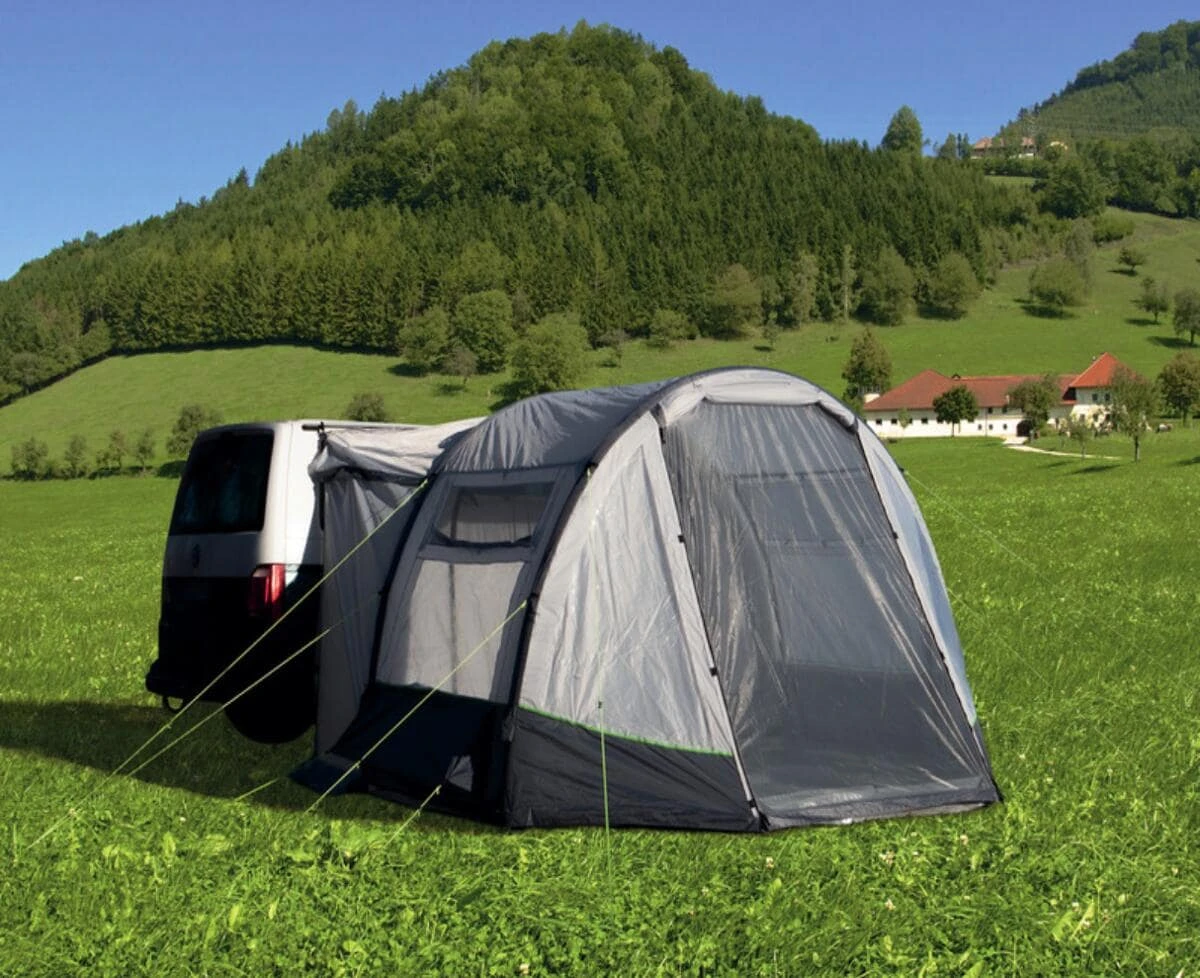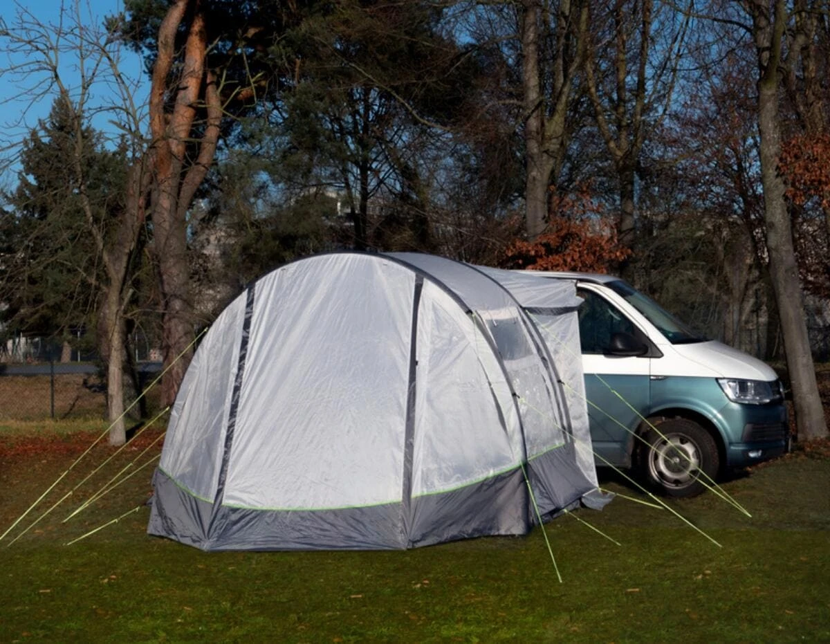 Der Klassiker: 1-Tunnel-Vorzelt jetzt mit Lufttechnologie. Die groĂe FronttĂŒr ist zusĂ€tzlich mit Moskitonetz ausgestattet.
