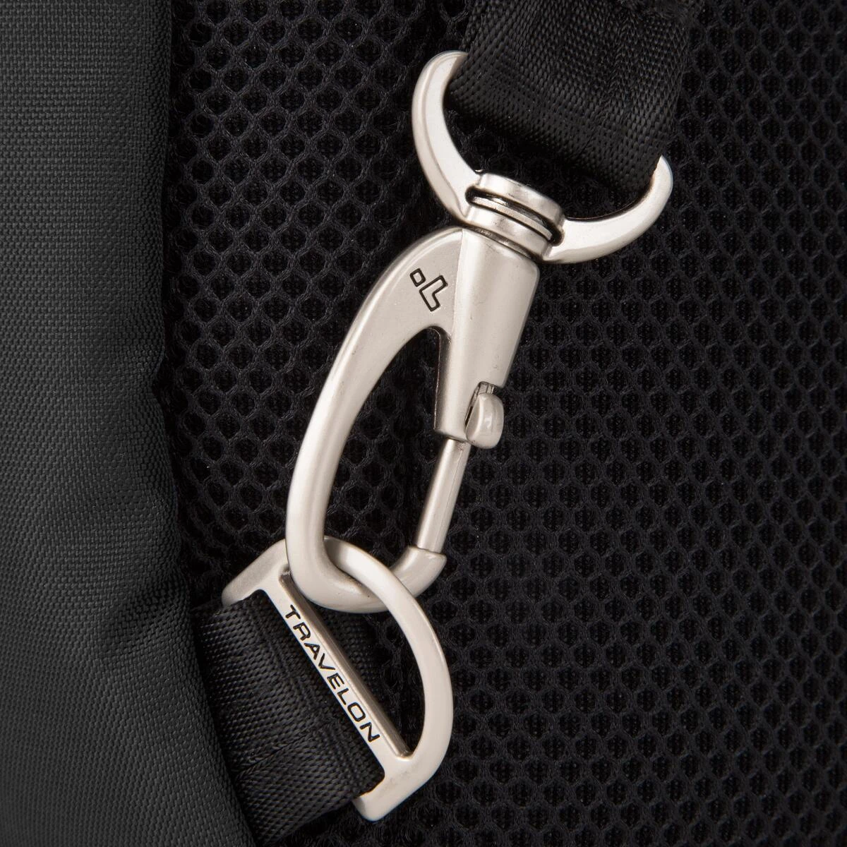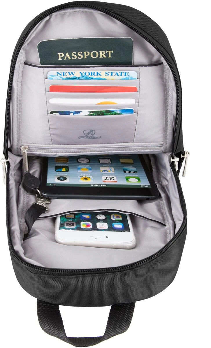 Anti-Diebstahl-Rucksack aus Edelstahlgewebe. Ausgestattet mit schnittfesten Tragegurten und diebstahlsicheren Reißverschlüssen, um Ihre persönlichen Gegenstände zu schützen. Die Tragegurte verbergen Seile aus rostfreiem Stahl in sich, um das Zerschneiden zu verhindern. Der Rucksack besitzt ein Schlüsselband mit LED-Lampe, einen Haltegriff und eine Seitentasche, ideal für eine Trinkflasche. Das hintere Fach ist mit Fleece ausgestattet z.B. für den Transport eines 15,6 “ Laptops oder Tablets. Das vordere Fach verfügt über einen RFID-Schutz für Ausweise und Kreditkarten.