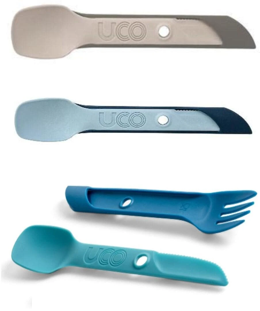 Ein praktisches Besteckset, kombinierbar in drei Varianten (Messer, Gabel, Löffel). Ausziehbar zu einem extra langen Untensil, ideal für tiefwandige Essensbehälter. Ein Loch dient zur Befestigung des Spork am Rucksack oder an der Tasche. Der Spork ist spülmaschinefest und mit Befestigungsschlaufe.