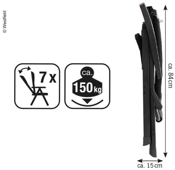 Äußerst leichter Campingstuhl mit zweifach faltbarer Rückenlehne für ein sehr geringes Packmaß: die 7-fach verstellbare Rückenlehne und das in der Dicke verstellbare Kopfkissen bietet diesem Campingstuhl einen hohen individuellen, fast königlichen Komfort.