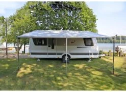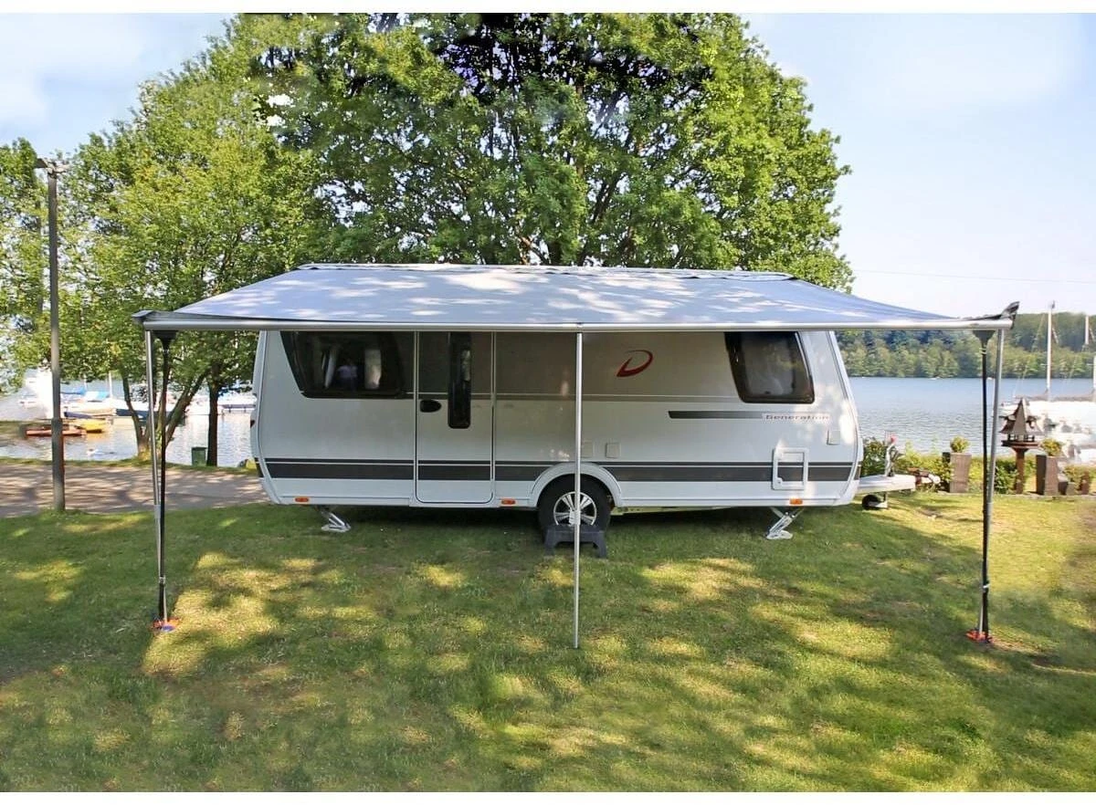 Dieses seit Jahren bewährte Set besteht aus einer Markise, 2 Seitenwänden und einer Vorderwand. Die Markise wird in die Kederschiene eingezogen und besteht aus beidseitig beschichtetem PVC mit Easy-Clean Schmutzbremse. Das Markisenzelt besteht aus 2 Seitenwänden und einer Front aus Airtex-Spezialgewebe, Faulstreifen und Spritzschutz aus PVC. Das komplette Set zeichnet sich durch eine hohe Stabilität, einfaches Handling und einen schickes zeitloses Design aus. Die Seitenwände sind mit Air-Vent-Fenstern ausgestattet, der Eingang in der Vorderwand ist austauschbar. Auszug 2,5 m.